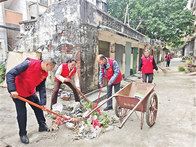 3月5日,市城市照明管理处联合港北区贵城街道东港社区等单位组织党员干部、志愿者共80多人开展“弘扬雷锋精神 争做时代新人”暨志愿服务月活动,对辖区内的环境卫生进行清理。图为活动现场。
