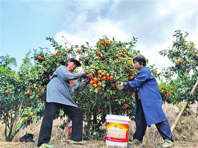 3月3日,平南县大安镇动界村的沃柑种植基地迎来了采收期。该种植基地面积131.5亩,沃柑产量预计可达100吨,可为该村集体经济增收20万元。图为村民正在采摘沃柑。