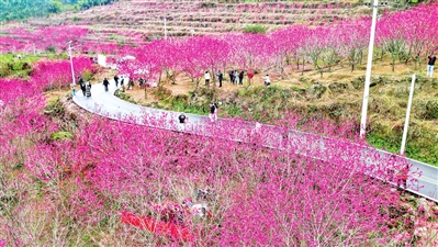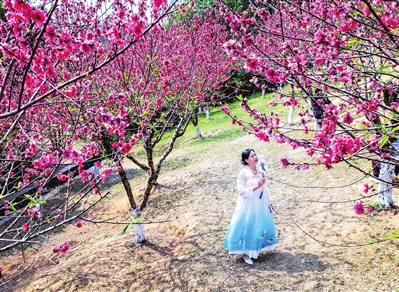 桂平佛荔村和平南龚州生态园的桃林,是春天最炽热的告白。远山含黛,近花灼红,春天在这里写下第一行诗;折一枝桃花簪发,捧一把缤纷落花,踩碎一地阳光,镜头里皆是怦然心动的瞬间。
