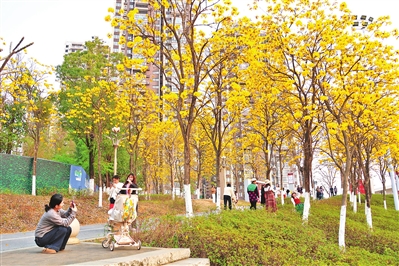 不必远行,贵港的街头巷尾早已缀满春信。园博园、金港大道的紫荆花织就粉色云廊,新世纪广场的木棉以火红擎向天空,滨江公园的黄风铃花串起金色风铃——每一步都踩碎花香,每一眼都是城市写给春天的情书。