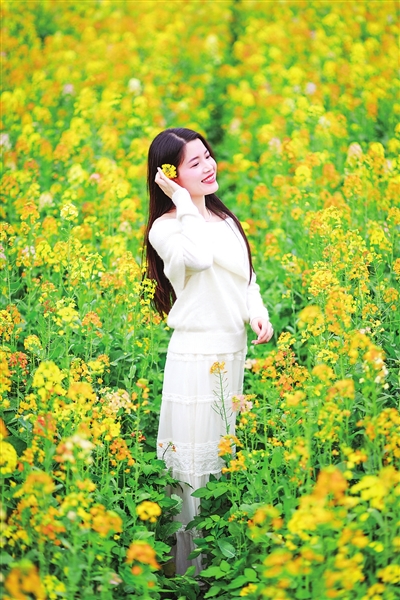 山边村的油菜花海泼洒成梵高的油画,幸福田园的格桑花以斑斓晕染大地。美人跌进花丛——是春天,赠予的这份美丽的温柔。