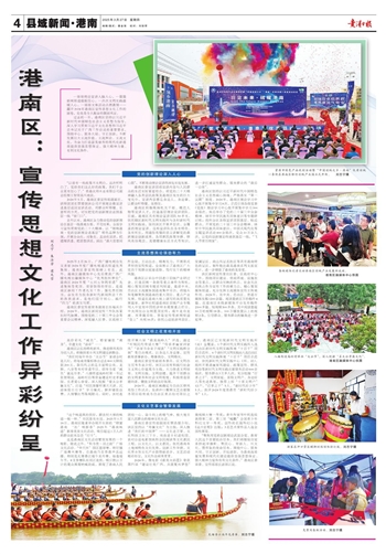 这是港南区文化活动繁荣发展的一个缩影。除此之外,“和为贵·羽之韵”广场文化活动、“华天杯”园区篮球赛、桥圩镇广场舞大赛等,在港南乃至贵港声名远播。特别是瓦塘香江端午龙舟赛,每逢端午节,8支参赛队伍同江竞技,吸引数以万计的观众围观呐喊助威,展现了港南人民团结一心、奋斗向上的精气神,极大地丰富人民群众的精神文化生活。