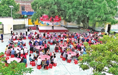 “我们村每年举办‘太公节’宴请全村老人时,将每桌用餐标准由过去800元降低到200元,取而代之的是丰富师公戏、龙狮、八音等本村非遗节目,倡导为爱‘减负’就是尽孝。”八塘街道高岭村第一书记张智翔说。高岭村自筹资金建设村史孝廉馆、长者爱心食堂,深入挖掘“姜太公孝廉文化”,打造“村民领餐听课天天讲、沉浸体验日日学”学习模式,摒弃铺张浪费、人情攀比等陈规陋习。同时,该村连续开展六届“最美高岭人”评选,通过“村规民约背诵大赛”“传承孝廉家训家风”“农家书舍亲子阅读”“文明实践积分制”等自治模式,以身边人身边事,宣传教育喜事新办、婚事简办、文明婚庆。