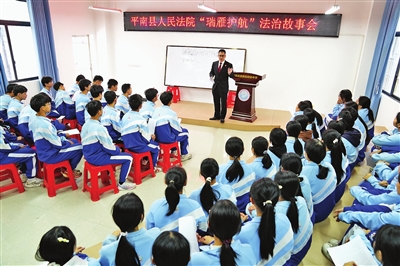 平南法院采用“校+院”合作模式,打造“瑞雁护航”青少年法治教育基地,并以此为中心,拓展出妇女儿童维权长廊、模拟法庭及家庭教育服务点等多个阵地。
