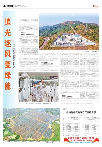 近年来,我市充分发挥清洁能源优势,以资源有效利用、能源合理开发、优化产业布局为抓手,引领产业转型升级,进一步激发清洁能源产业发展活力。据南方电网广西贵港供电局数据,截至今年一季度,全市风电装机容量达67.41万千瓦,光伏装机容量达281.08万千瓦。一季度集中式风电上网电量3.85亿千瓦时,光伏上网电量5.36亿千瓦时。