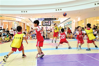 5月17日,我市30余家幼儿园联合举办幼儿篮球联赛。图为孩子们比赛的精彩瞬间。全媒体首席摄影记者张庆杰摄