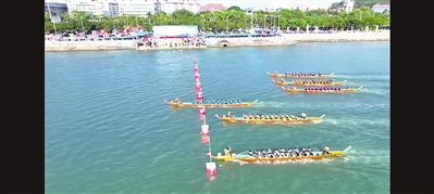 本次比赛一共有18支队伍参赛,经过前面两轮淘汰赛,最后广西民族大学龙舟队、南宁市下楞新村龙舟队、隆安县那元渡忑队、贵港市平南河山龙舟队、横州市莫渡龙舟队、广西百色学院龙舟队6支队伍进入决赛。比赛正式开始,平南河山龙舟队位于第四赛道。只见6艘龙舟如离弦之箭向前滑去,击鼓声、呐喊声不绝于耳。