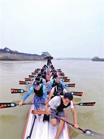 因为热爱而坚持的故事还有许多,邓厚乐就是其中一个。35岁的邓厚乐是一名挖掘机司机,因为职业的关系,长期久坐且不爱运动,身高1.7米的他体重高达110公斤。2022年加入龙舟队后,跟着队伍训练,他逐渐爱上了这项运动,不到两年时间减重20多公斤。“动起来后,人也精神了。划龙舟不仅是对传统文化的传承,自己的身体也得到了锻炼。”邓厚乐开心地说。