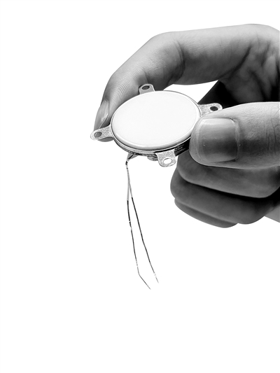 中国科学院脑科学与智能技术卓越创新中心研发的侵入式脑机接口植入体(3月22日摄)。