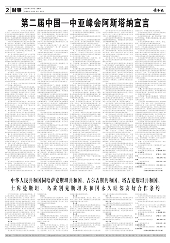 中华人民共和国同哈萨克斯坦共和国、吉尔吉斯共和国、塔吉克斯坦共和国、土库曼斯坦、乌兹别克斯坦共和国永久睦邻友好合作条约