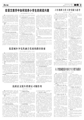 经本文研究可以明确,创设真实情境、运用多样化教学方式以及优化课堂互动,可以有效提高小学生的阅读兴趣。情境创设使学生仿佛置身其中,增进他们对课文的理解以及情感投入;多媒体与小组合作能让学生在轻松愉悦的氛围中主动参与;课堂互动的优化为学生提供表达与思考的契机,促使他们在讨论和互动中深化对文本的理解。