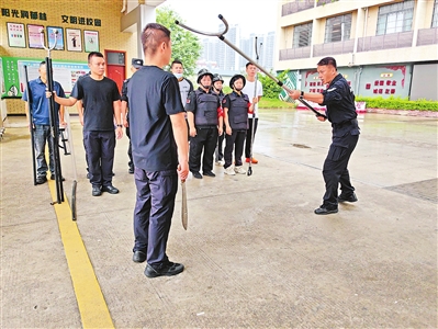 6月17日,贵港市公安局特警支队在港北区郁林路小学进行应急联防演练,增强师生及安保人员防暴意识,提升校园防范应对突发事件的能力,有效预防、及时控制和消除校园重大突发事件危害,营造安全、和谐的校园环境。图为特警支队民辅警联合该校老师、安保人员开展应急联防演练。叶小燕 韦理摄影报道