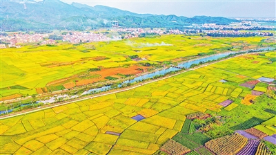 7月初,我市各地水稻逐渐迎来收割期,处处呈现出喜人的丰收景象。图为7月8日记者拍摄的覃塘区覃塘街道至蒙公镇一带的稻田景观。全媒体首席摄影记者张庆杰摄