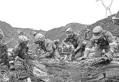 8月10日,武警甘肃总队机动支队官兵在兰州市榆中县马莲滩村搜寻失联人员。当日,武警甘肃总队投入400余名兵力在兰州市榆中县兴隆山村、马莲滩村、小康营村、旧庄沟村等地开展搜寻失联人员、居民区清淤、物资转移、防疫消杀等任务。新华社发(刘亚斌摄)