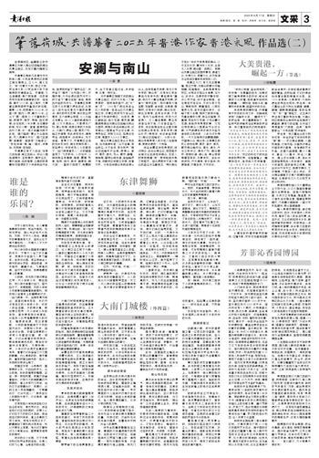 人群散去后,我去狮队里找奶奶,那时,狮队里的同村阿伯就说要教我打大鼓。鼓是真的大,好几个我坐在里面都填不满,鼓面摸起来坚硬又粗糙,阿伯说是牛皮做成的。我跟着阿伯的指示用力敲击大鼓,“嗒咚锵”“咚锵”……一声一声环绕在我脑海又击打在我心头。那时,我偷偷想着,要快快长大,长大后我就可以敲着大鼓让奶奶跟着鼓声舞狮子。