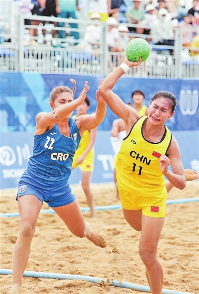 本报讯 (全媒体记者陆颖敏)8月7日至12日,第十二届世界运动会沙滩手球比赛在成都兴隆湖举行。经过激烈角逐,贵港籍运动员庞佳烨和队员勇夺世运会女子沙滩手球第六名。