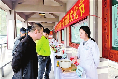 近日,市中医医院举行第一届药膳文化节。活动现场,医务人员将食材与药材巧妙搭配,制作出百合玉竹麦冬椰奶糕、天麻鱼头汤等15道色香味俱全的药膳,同步提供祛湿茶、养胃茶等中药代茶饮,吸引周边群众驻足品尝、探讨。现场还陈列药食同源中药材,中医科医生免费为群众提供脉诊、体质辨识服务,量身定制药膳食疗方案,解答慢性病调理、亚健康改善等健康疑问,让群众感受传统中医养生文化的独特魅力。图为活动现场。全媒体记者姜佳坤摄